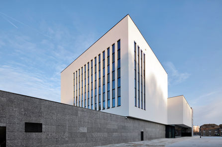 L’objectif du projet étant basé sur un espace multifonctionnel et multiculturel fonctionnant de façon simultanée ou distincts de jour comme de nuit, l'approche architecturale s'oriente sur l'imbrication de volumes à géométrie stable de type parallélépipédiques. Leur variation d'échelle et leur agencement par effet de glissement le long de deux axes centraux Nord/Sud et Est/ Ouest permet de générer une hiérarchie entre espaces servants et servis. La tectonique du projet alternant pierre bleue et enduit blanc cherche à contraster par la matière et la lumière, l'échelle des volumes et donc des fonctions.
